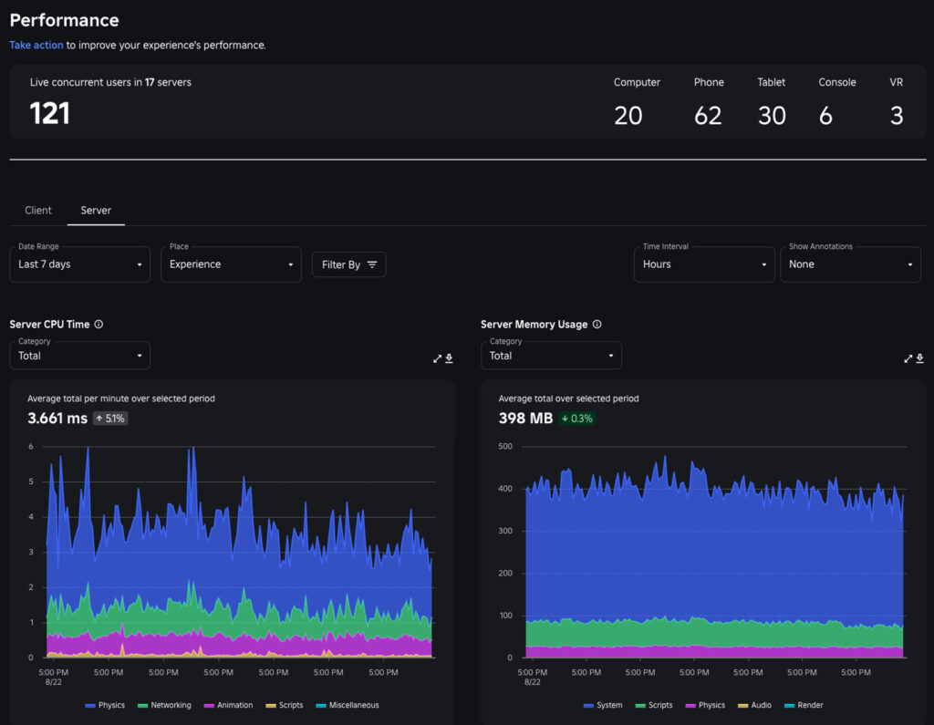 Performance dashboard – Roblox Creator Hub – Documentation